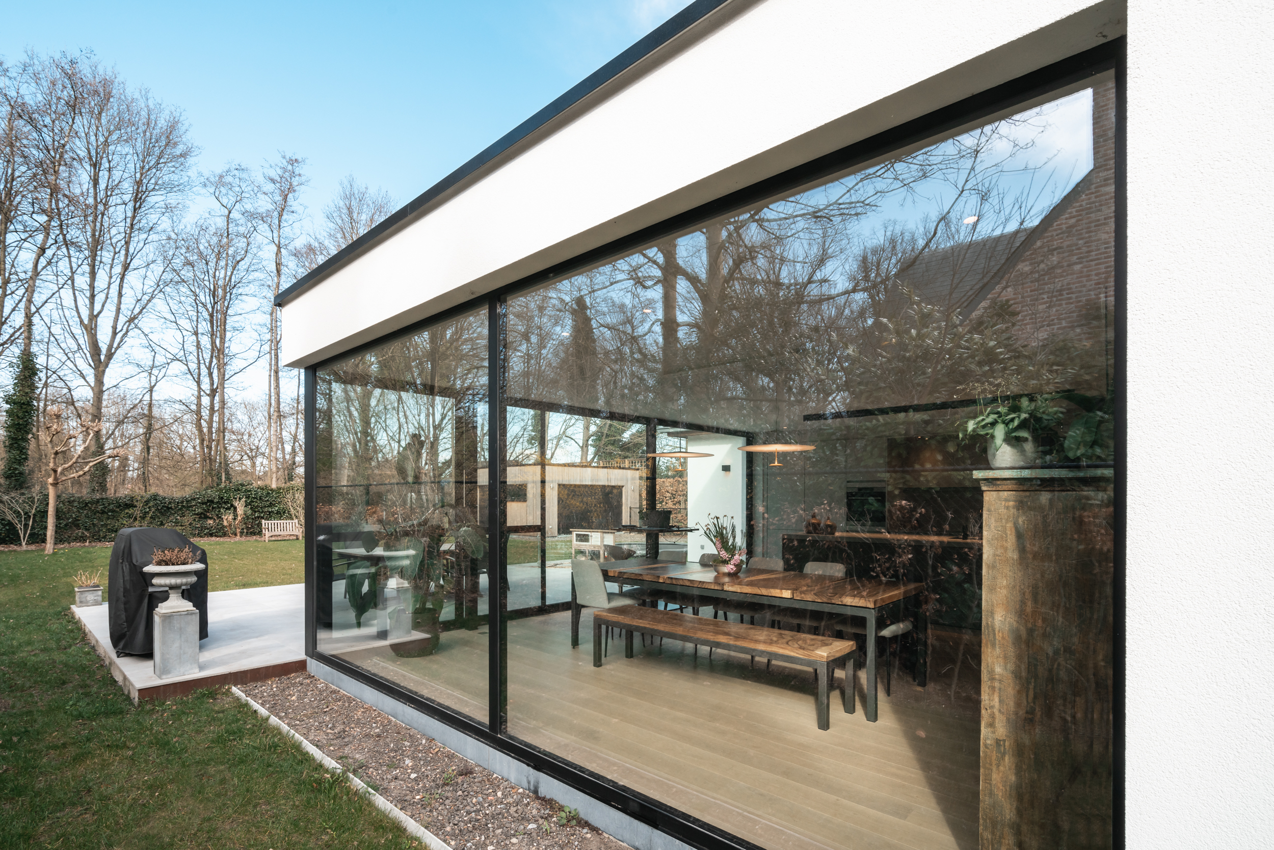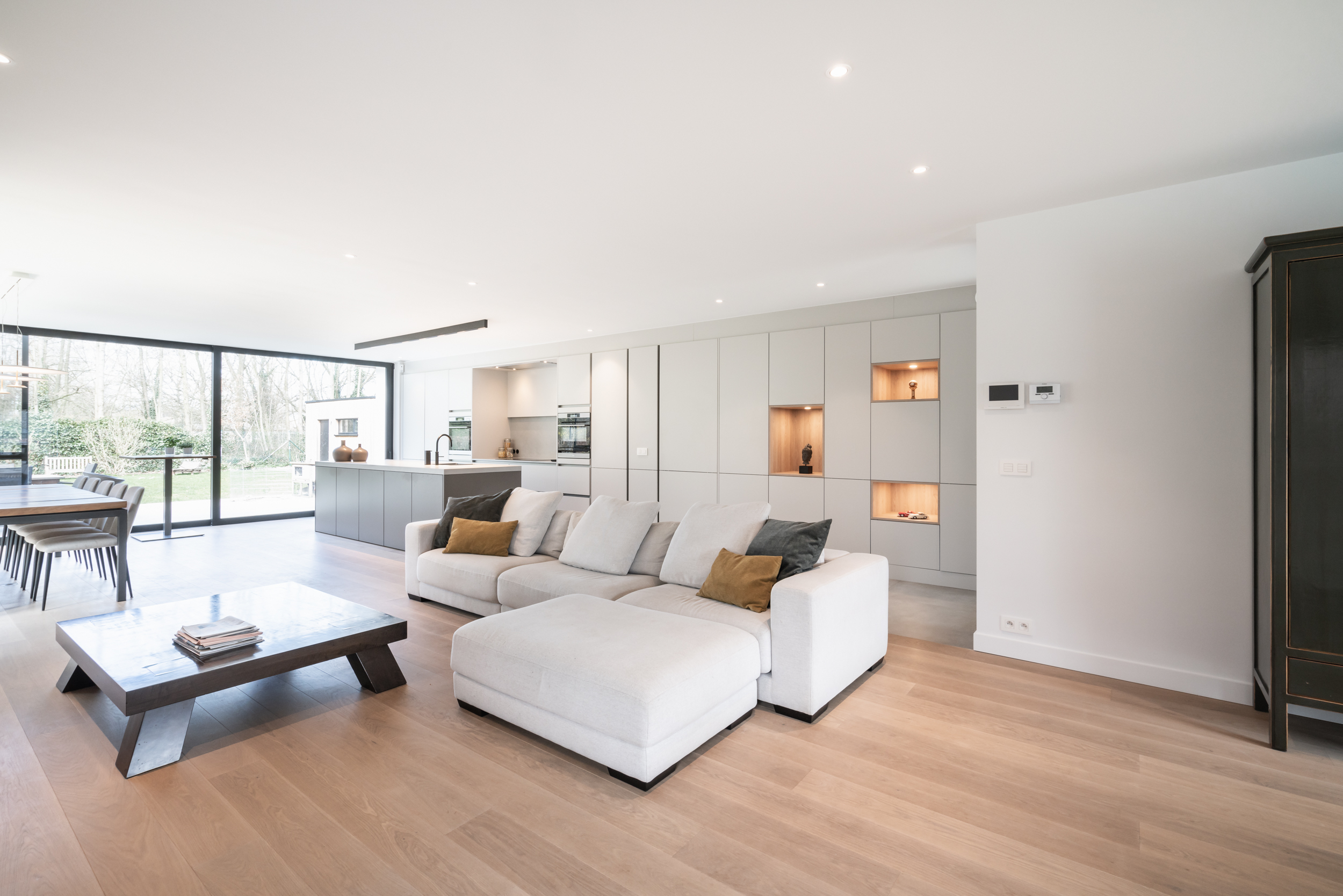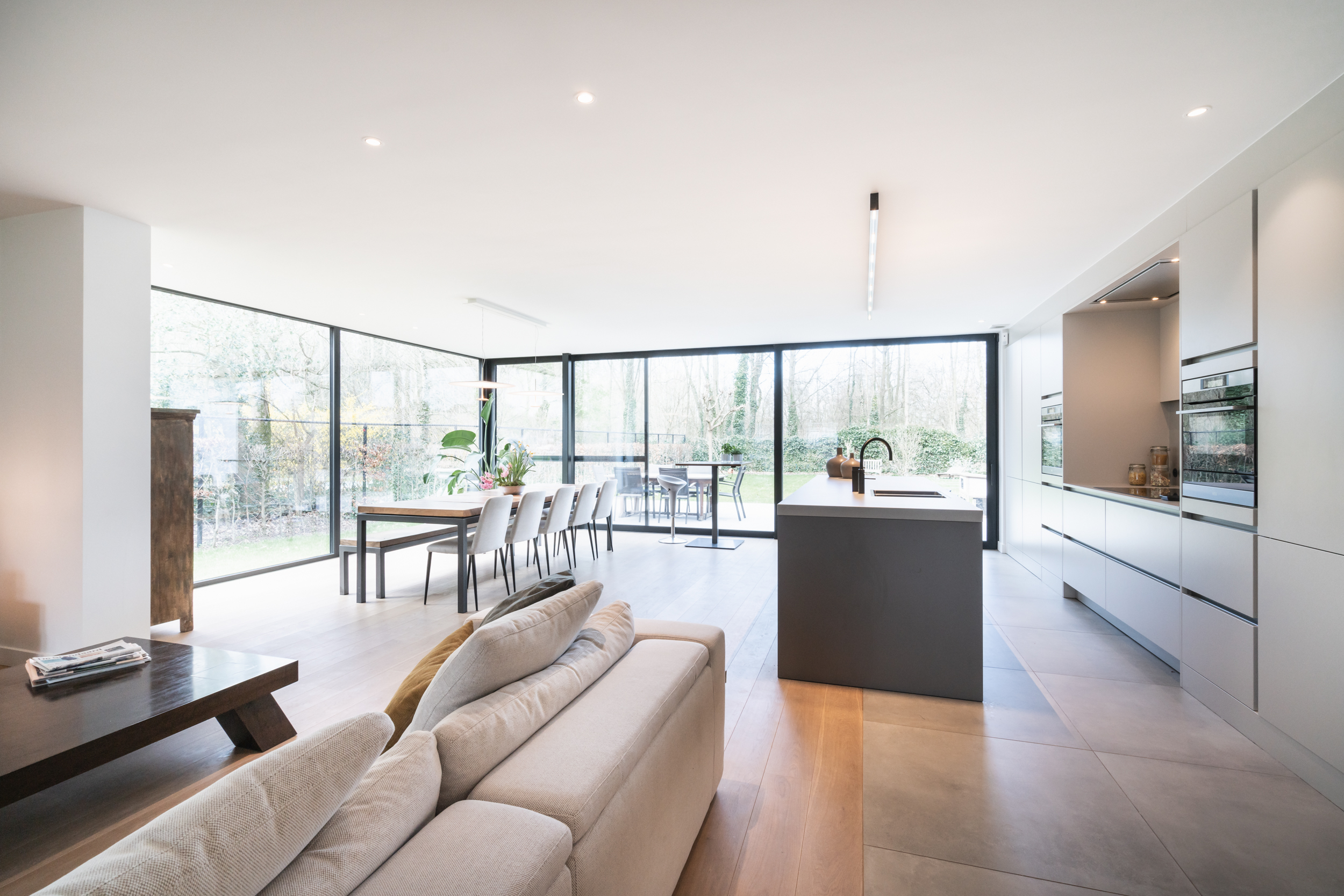 Onze recente projecten spreken voor zich. Neem bijvoorbeeld de gelijkvloerse woning in Hove. We hebben niet alleen de bewoonbare oppervlakte vergroot door een strakke uitbreiding, maar we hebben ook gezorgd voor naadloze integratie. Geen zichtbare balken of doorhangende constructies; het lijkt alsof de uitbreiding er altijd is geweest. Dankzij doordachte interieurkeuzes vormen de leefruimte en de uitbreiding één harmonieus geheel.