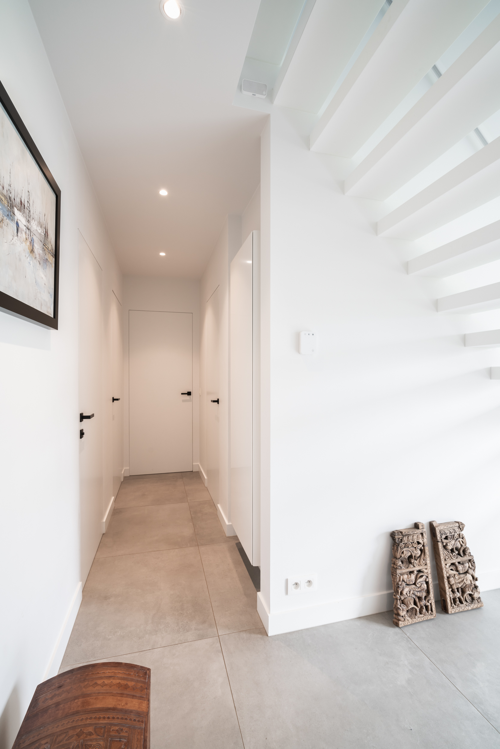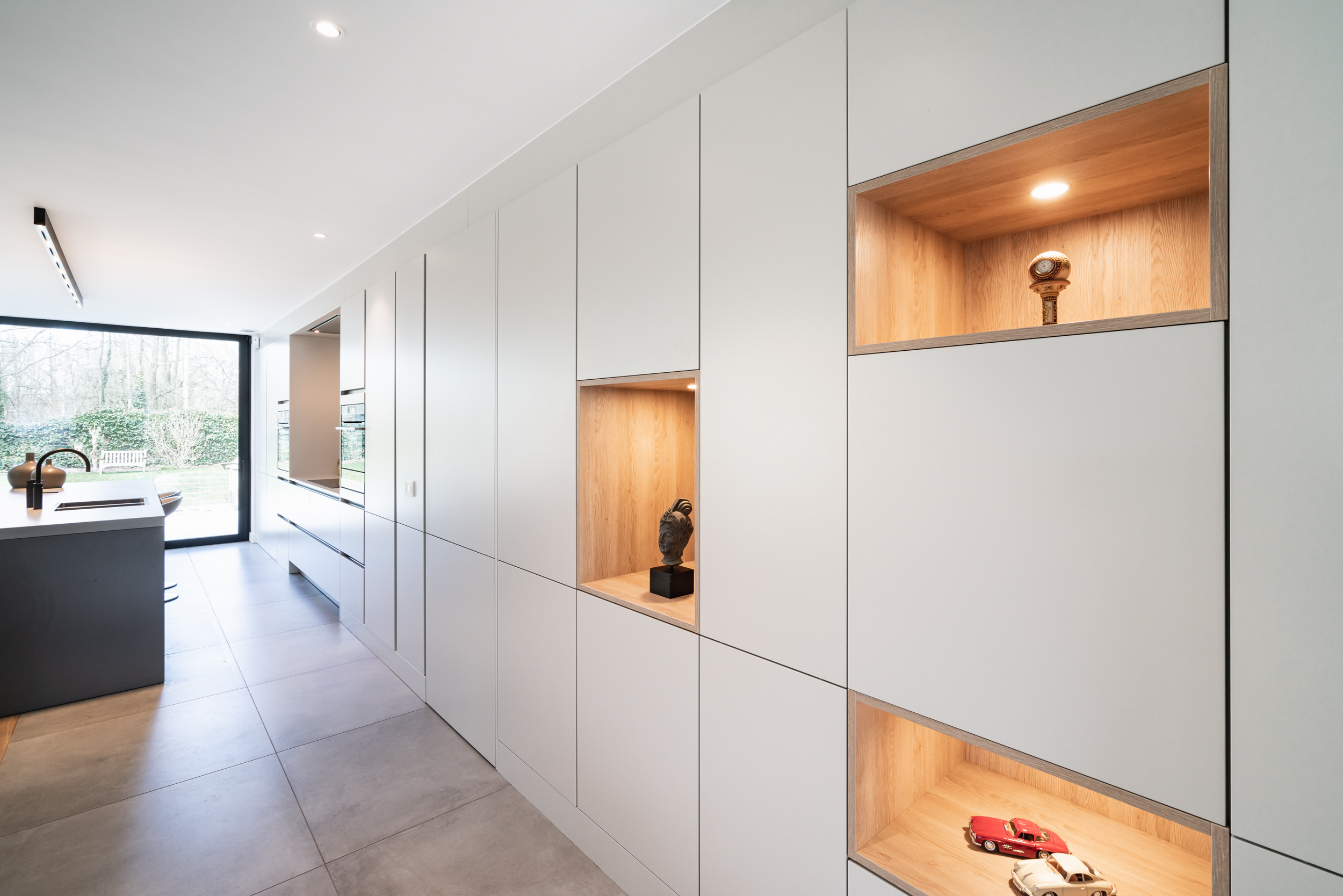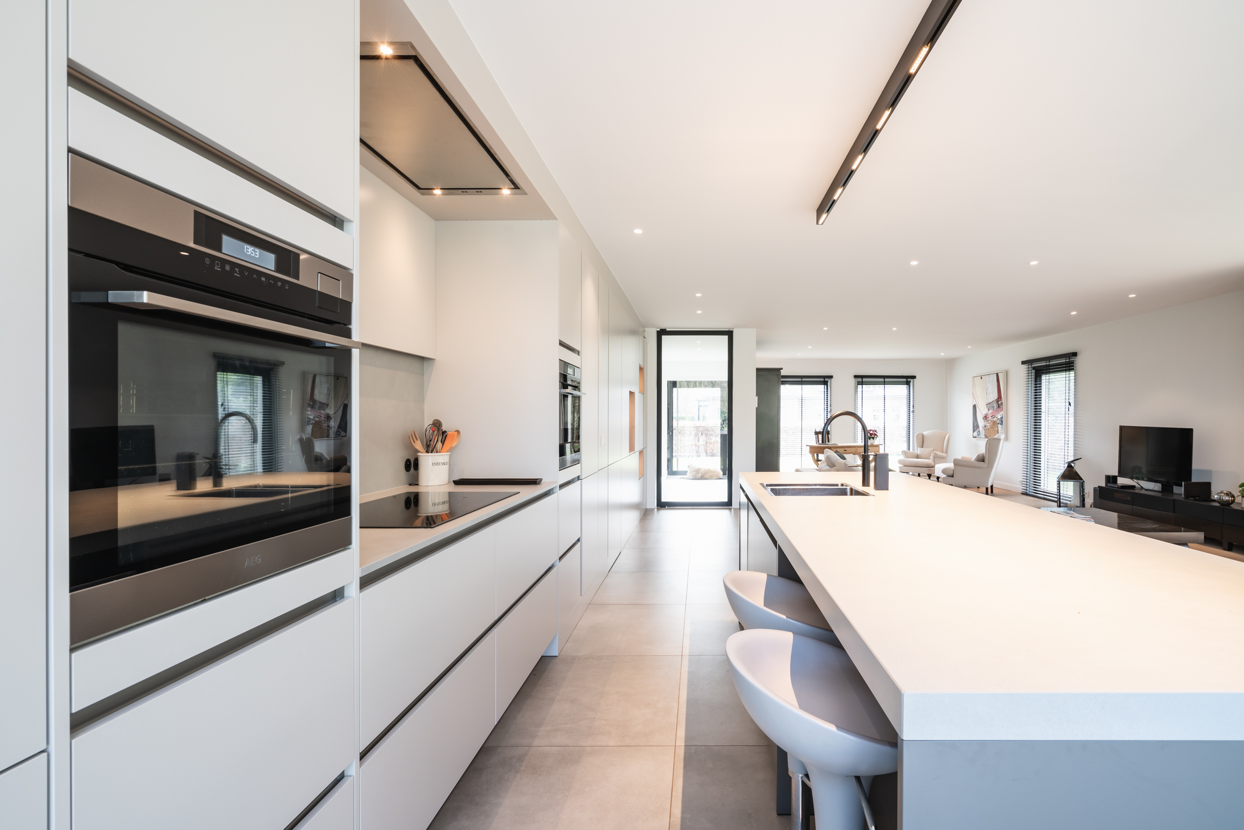 Onze recente projecten spreken voor zich. Neem bijvoorbeeld de gelijkvloerse woning in Hove. We hebben niet alleen de bewoonbare oppervlakte vergroot door een strakke uitbreiding, maar we hebben ook gezorgd voor naadloze integratie. Geen zichtbare balken of doorhangende constructies; het lijkt alsof de uitbreiding er altijd is geweest. Dankzij doordachte interieurkeuzes vormen de leefruimte en de uitbreiding één harmonieus geheel.