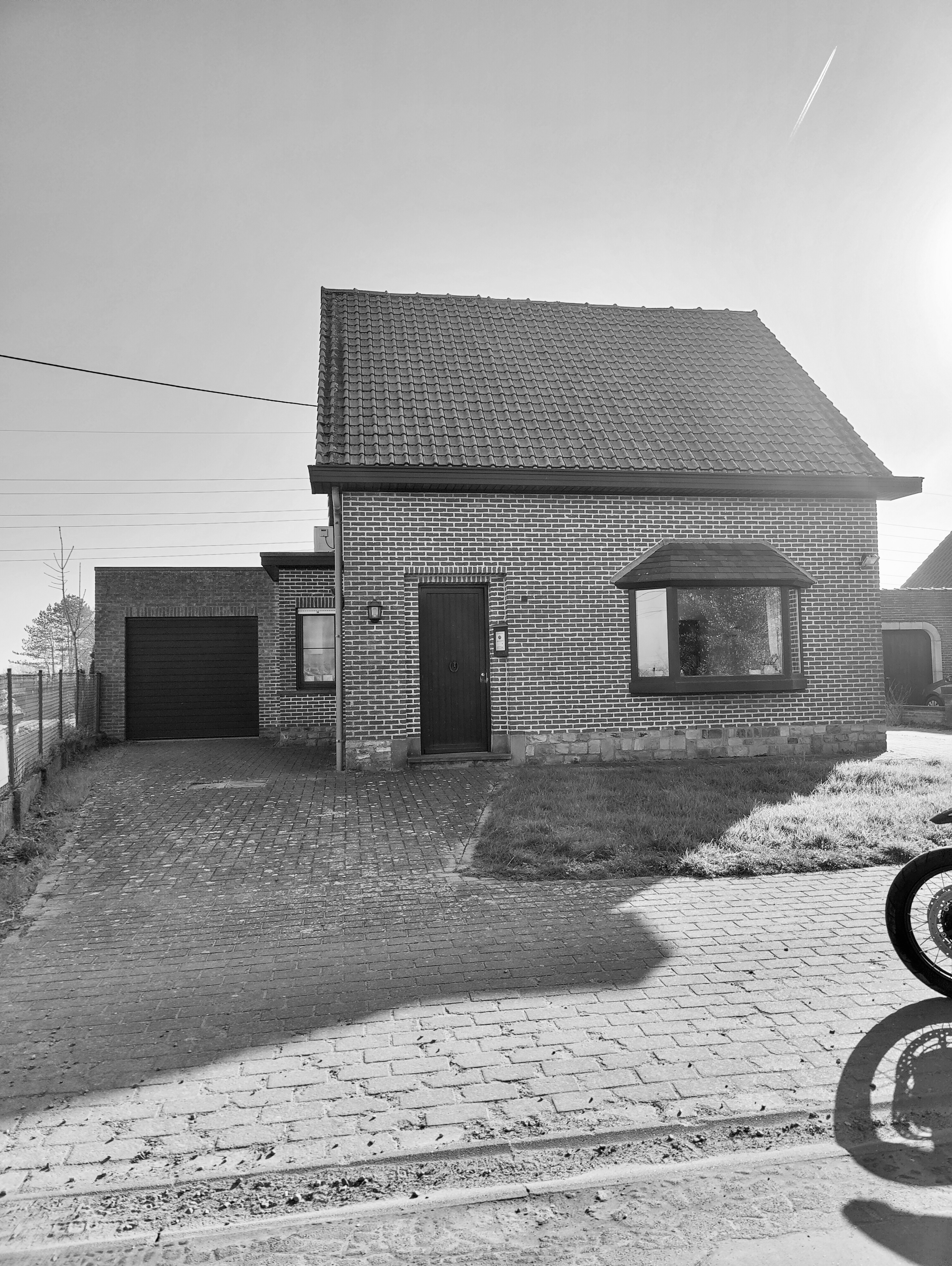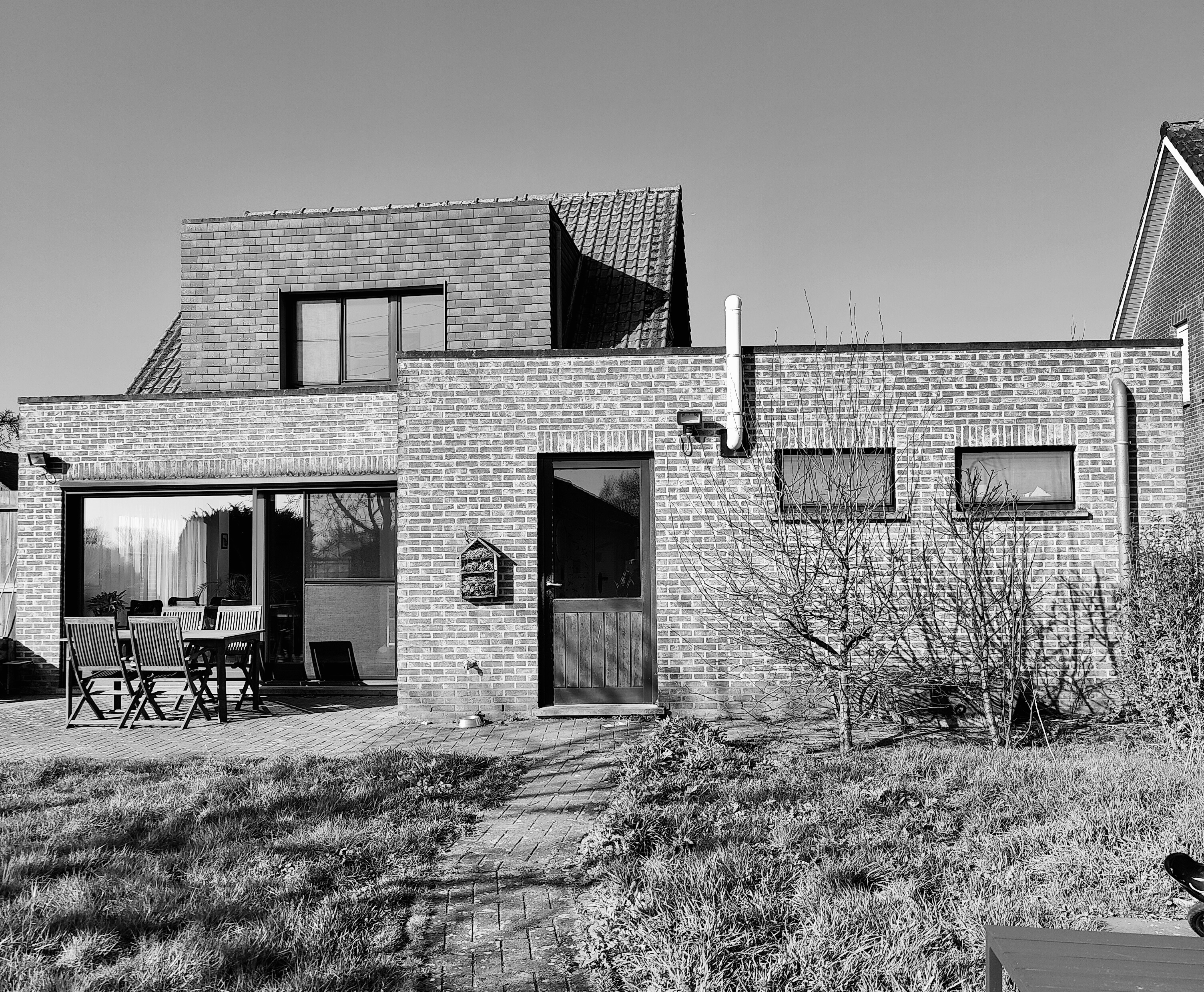 Deze vrijstaande gezinswoning in Waarloos (Kontich) onderging een zeer grondige renovatie. De oorspronkelijke woning bestond uit een gelijkvloers met een zolderverdieping onder een hellend dak. In het nieuwe ontwerp werd het volume volledig herwerkt tot een compacte woning met twee volwaardige verdiepingen en een plat dak.