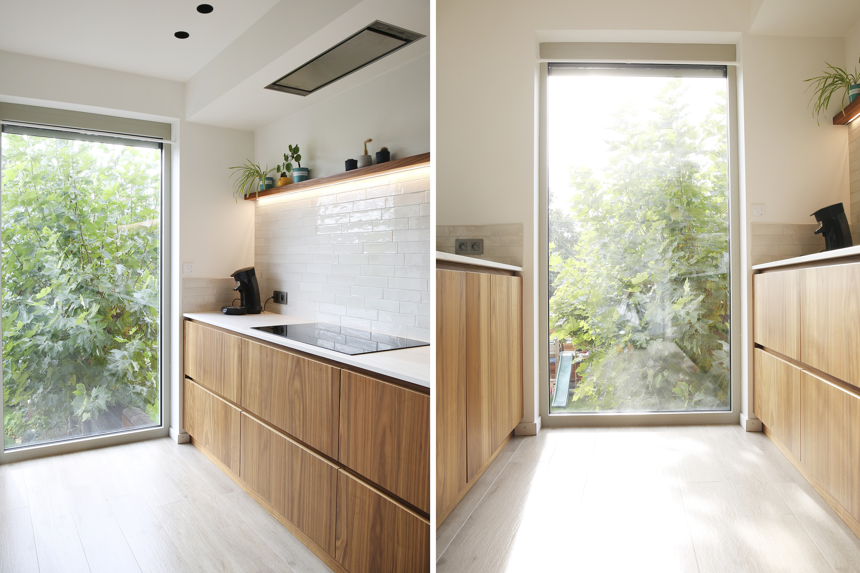Wij ontwerpen woningen waarin de overgang tussen verschillende ruimtes natuurlijk en vloeiend verloopt. Denk bijvoorbeeld aan een open keuken die moeiteloos aansluit op de eet- en leefruimte, of een op maat gemaakte kast die zorgt voor subtiele afscheiding en extra opbergruimte. Door strategische indelingen en slimme oplossingen, zoals ingebouwde opbergmogelijkheden en verborgen technische installaties, creëren we een opgeruimde, overzichtelijke leefomgeving die bijdraagt aan een aangename woonervaring.