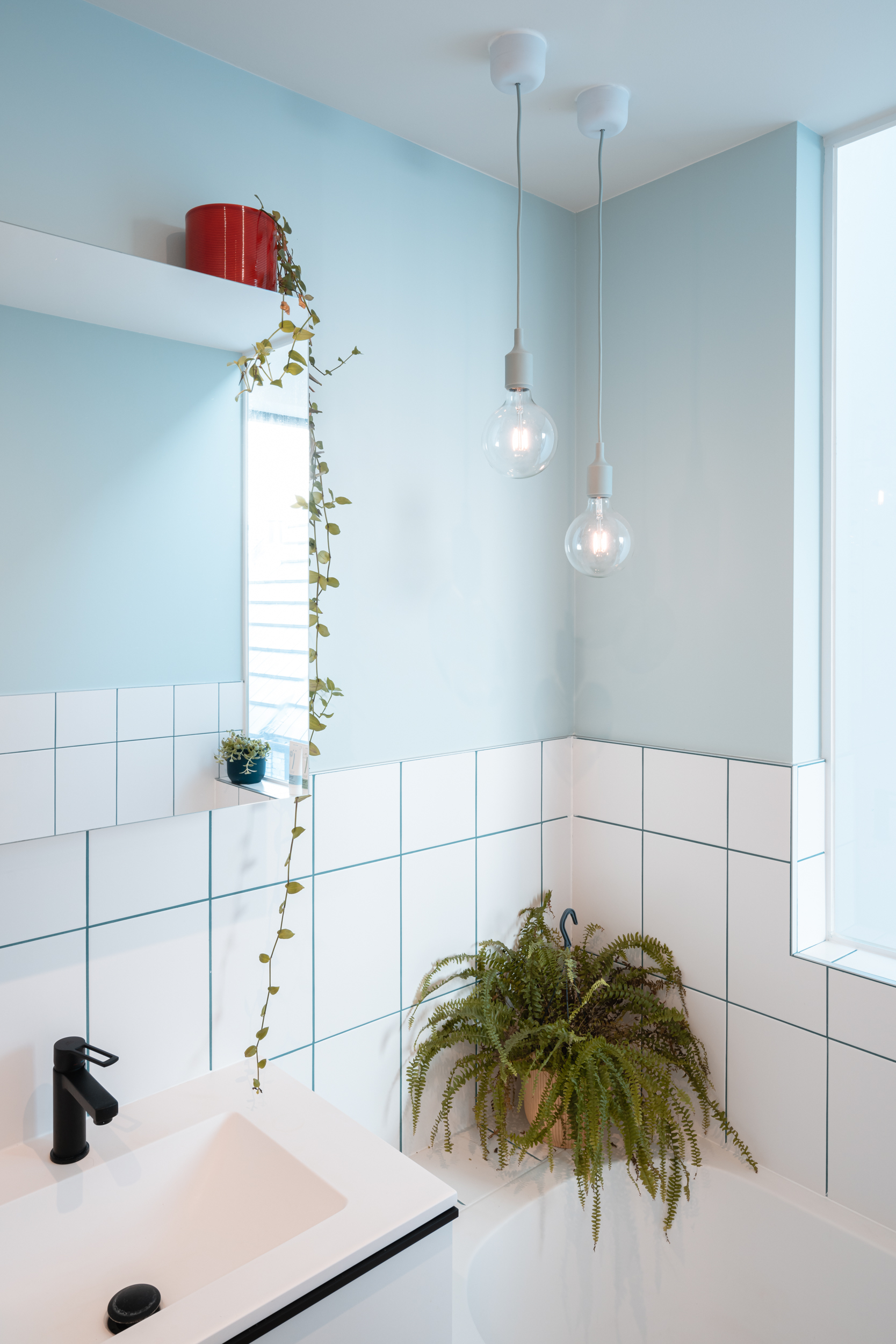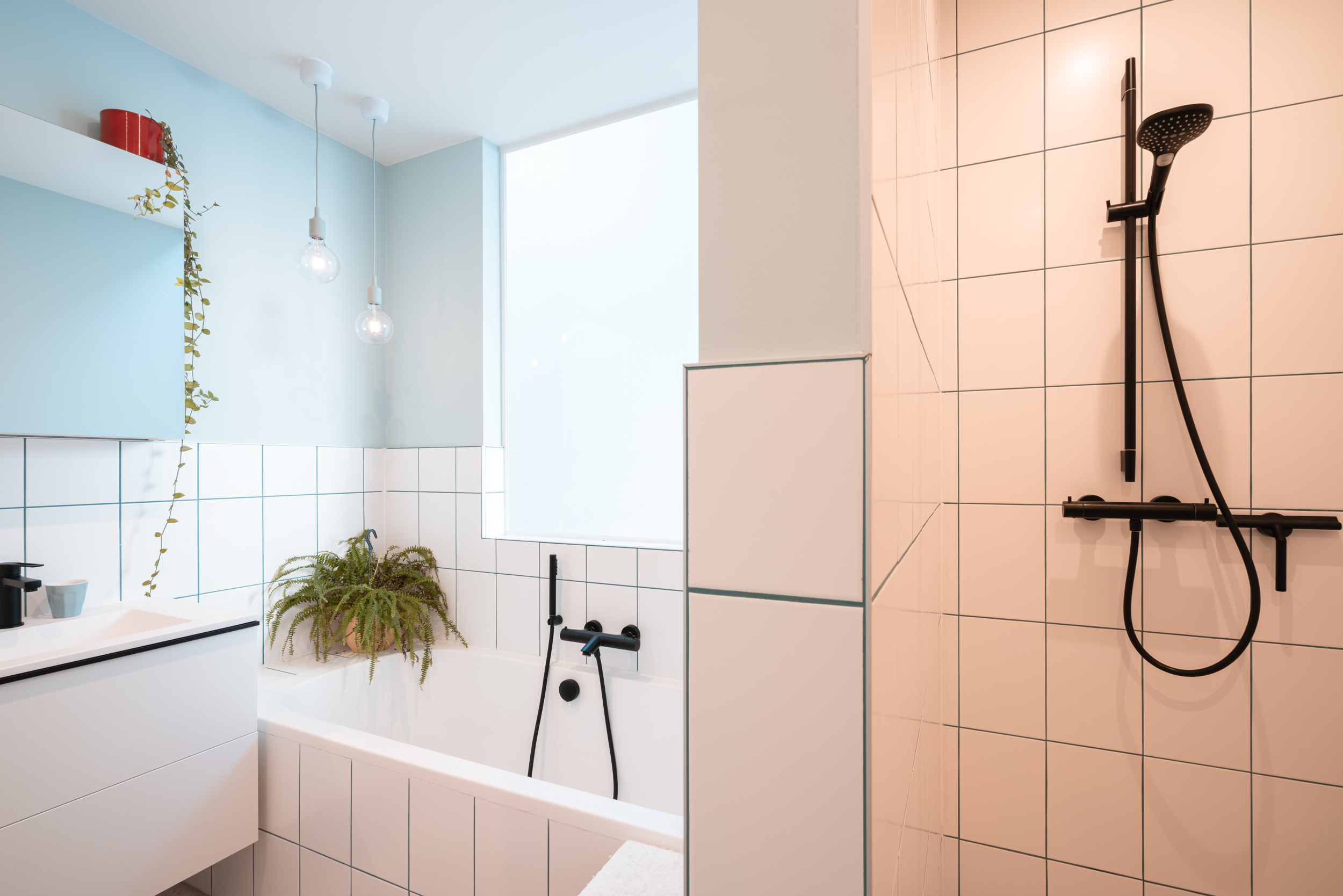 Op de verdieping vinden we twee kinderkamers, een ouderslaapkamer, een bureauruimte én een badkamer. Ook hier zorgt de vide voor licht centraal in de woning. Iedere binnenruimte baadt in het daglicht.